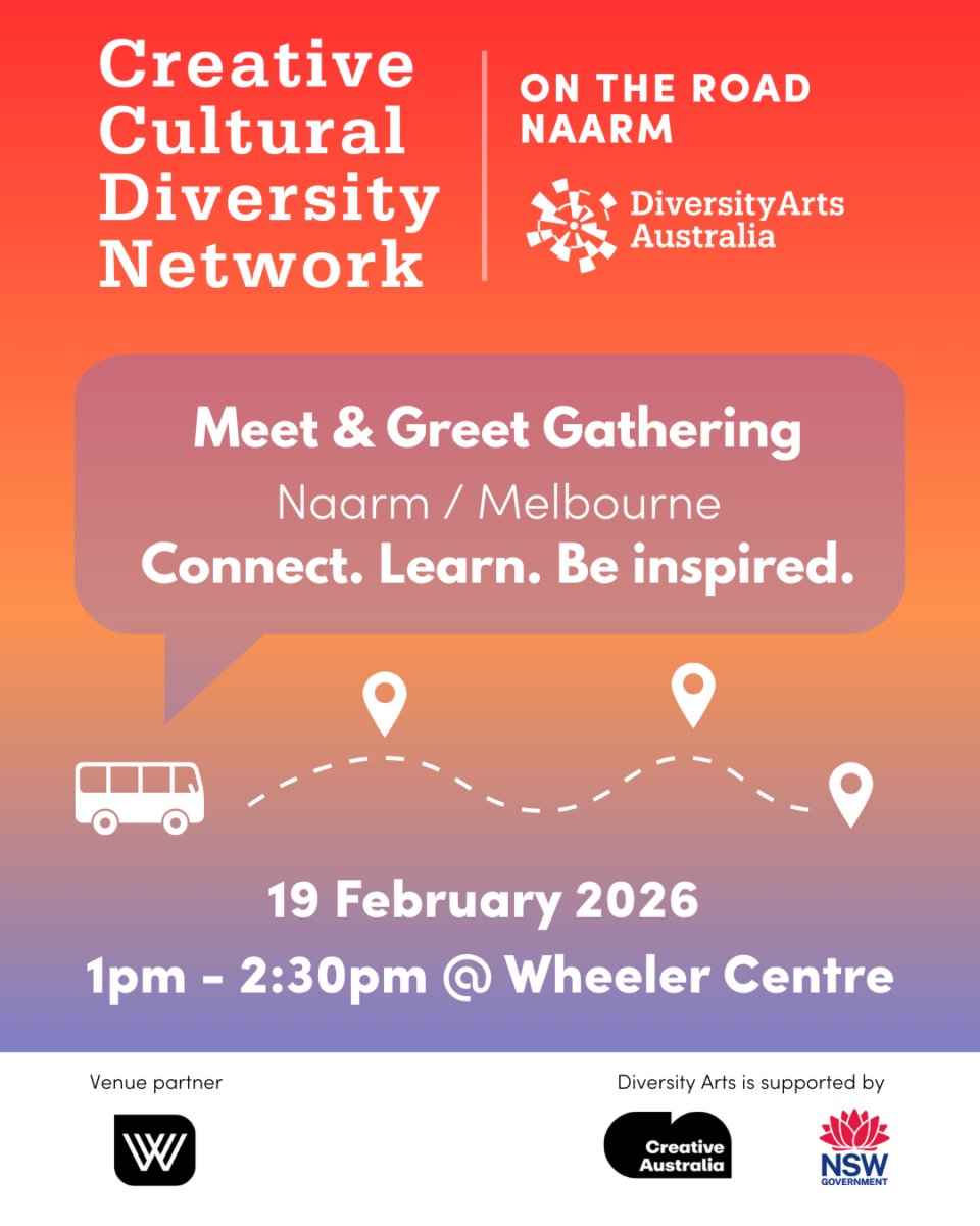 This event is presented by Diversity Arts Australia. Diversity Arts Australia receives additional support from Creative Australia and Create NSW.